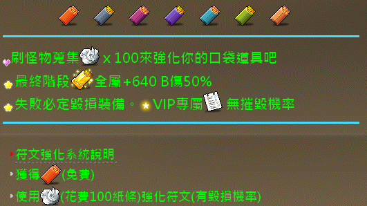全域怪物掉落皆可獲得『看不懂的紙條』,雙擊紙條即會出現強化頁面。
